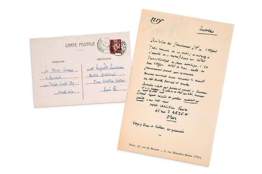 Carte postale autographe signée adressée à Raymond QUENEAU 20 octobre 1942, 1 page in-12 oblong à l'encre sur papier.