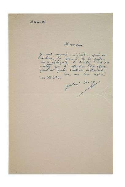 Samedi [1960], 1 demi-page in-12 à l'encre sur papier.