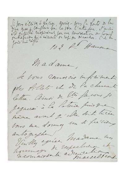 «[...] Je vous remercie infiniment des billets et de la charmante lettre.