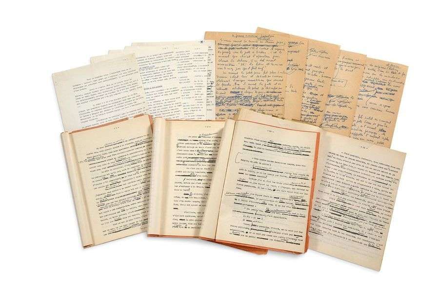 Parinaud (17, 19, 16 et 36 pp.). L'écrivain et le journaliste ont corrigé, raturé, amélioré au crayon et au stylo bille ces retranscriptions tapuscrites des émissions diffusées en 1955|