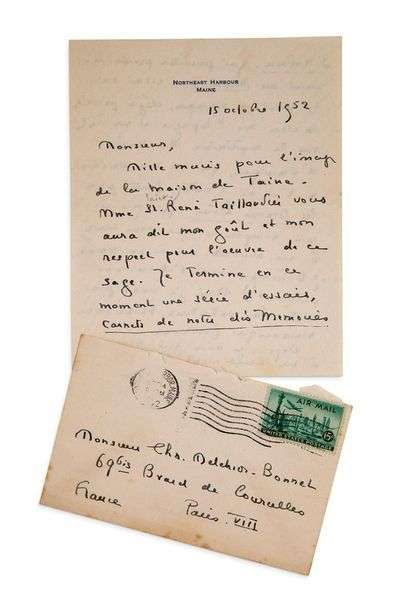 Lettre autographe signée adressée à Christian MELCHIOR-BONNET S.l., 15 octobre 1952, 2 pages in-8 à l'encre sur papier à entête de