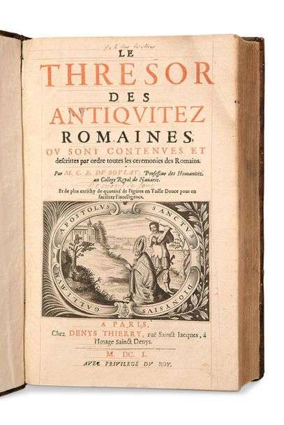Le Thresor des antiquitez romaines, ou sont contenues et descrittes par ordre toutes les ceremonies des Romains. Et de plus enrichy de quantité de figures en taille douce pour en faciliter l'intelligence. Paris, chez Denys Thierry, 1650.