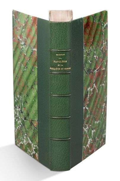 Napoléon et la conquête du monde. 1812 à 1832. Histoire de la monarchie universelle. Paris, Delloye, 1836. In-8, demi-maroquin vert, dos à nerfs, couverture verte imprimée conservée (Reliure Laurenchet).