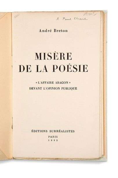 Misères de la poésie, L'Affaire Aragon devant l'opinion publique. Paris, Éditions surréalistes, 1932.
