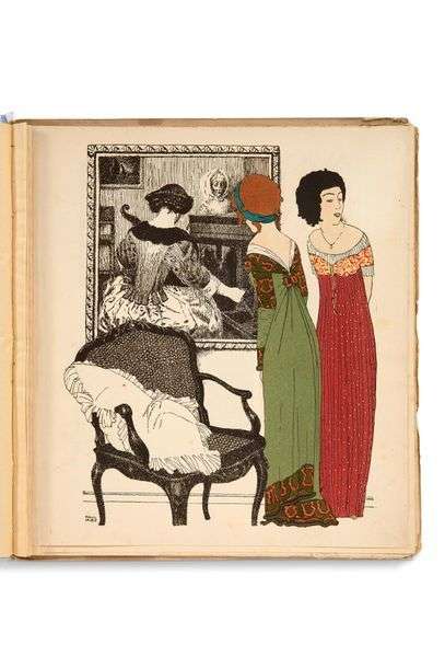 C'est en 1908, avec Les Robes de Paul Poiret racontées par Paul Iribe que le grand couturier révolutionne le genre: il met à la mode les couleurs vives appliquées au pochoir et les modèles dessinés en aplats.
