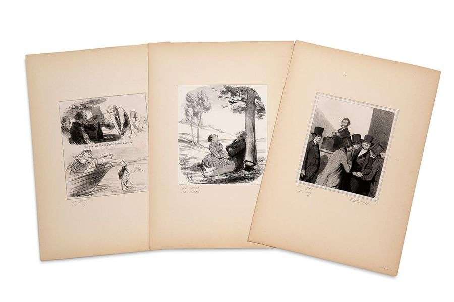 Planches de diverses séries: Types parisiens, Types français, Tout ce qu'on voudra, Souvenirs du congrès de la paix, scènes parlementaires