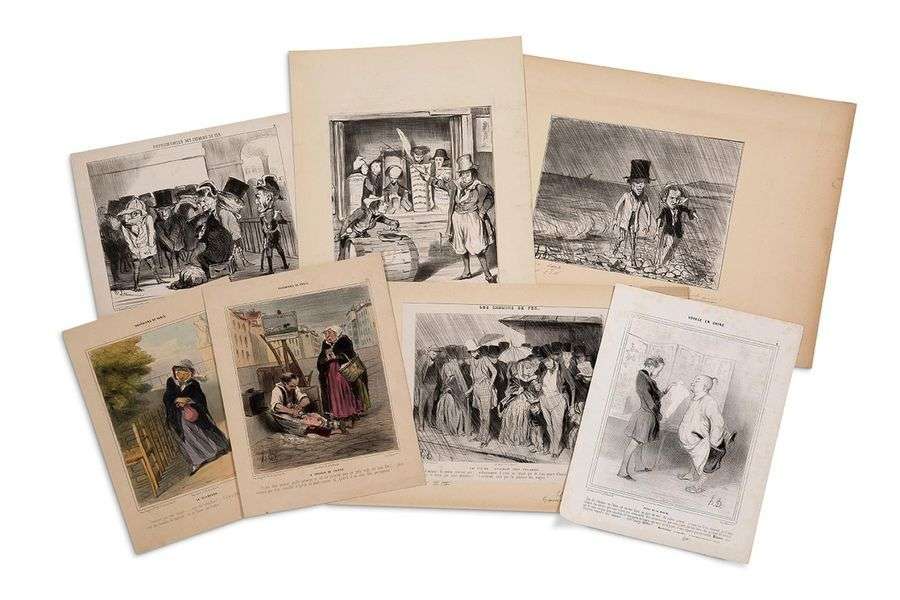 Lithographies sur vélin blanc, certaines coloriées, certaines jaunies, rousseurs, taches.