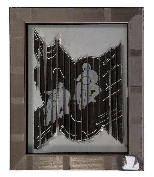 Gouache sur papier à lamelles découpées et contrecollées sur carton, signée au recto par