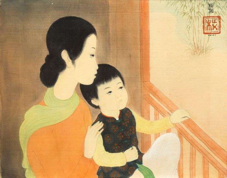 Plébiscité depuis son passage remarqué à l'Exposition coloniale internationale de Paris en 1931, Mai Trung Thu n'a cessé de de parfaire sa technique et développé son style. Le petit frère témoigne de l'excellence du peintre dans cette recherche de la perfection. Le soin apporté à cette composition est particulièrement admirable. Les visages de cette famille sont d'une délicatesse nouvelle. Sveltes et allongés, une certaine noblesse s'en dégage. Le trait fin et discret de l'artiste permet de rendre avec une minutie toute particulière certains détails tels que la racine des cils, les cheveux le long de la nuque ou encore près de l'oreille. Le vêtement du petit garçon fait lui aussi preuve d'un travail exceptionnel : le rendu est particulièrement soigné et détaillé. Par ailleurs, la palette employée s'annonce comme les prémices de celle qui sera la sienne dans les futures années. Ces tonalités vives et colorées soulignent le sentiment de joie retranscrit lors de ce moment de complicité.