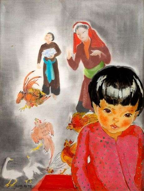 Encre et couleurs sur soie et fixé sous verre, signée en bas à gauche 33.5 x 25.5 cm -13 1/8 x 10 in.
