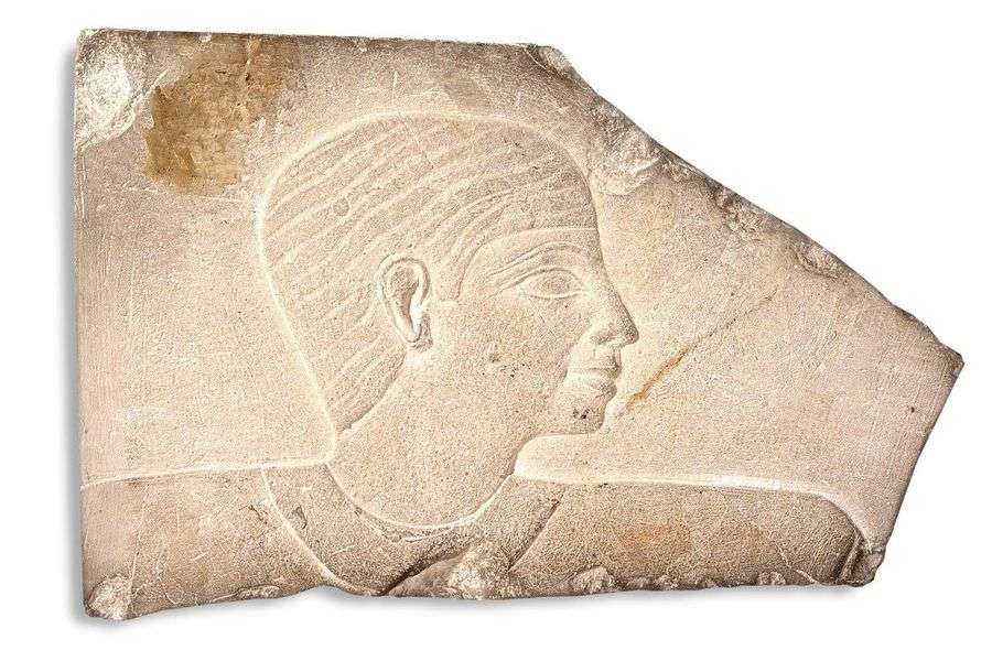 BAS-RELIEF AMARNIEN en calcaire représentant une tête d'homme au profil droit