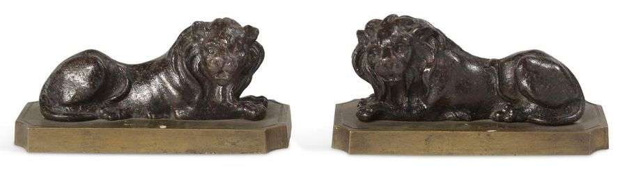 PRESSE-PAPIER AUX LIONS COUCHÉS en bronze à patine noire XIXe siècle