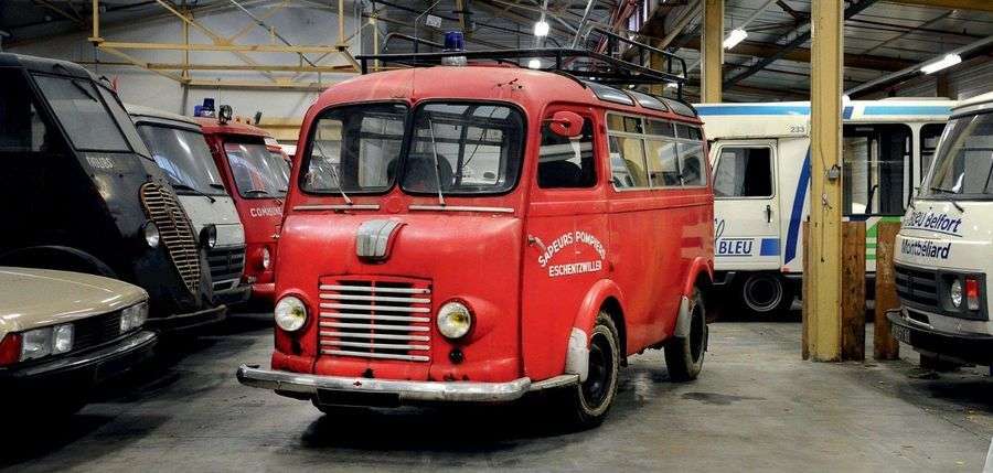 Ce bus D4 a été utilisé par les sapeurs - pompiers d’Eschentzwiller en Alsace. Il arrivera dans les réserves de l’Aventure Peugeot après de longues années de bons et loyaux services. Jamais restaurée, la carrosserie est corrodée en plusieurs endroits, mais l’habitacle est toujours équipé des installations d’origine.