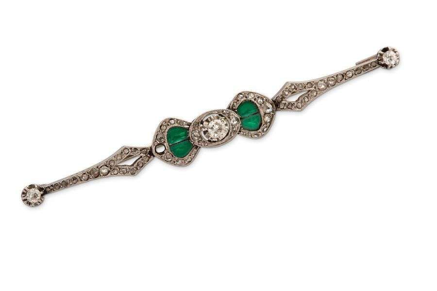 diamants de taille rose, de taille ancienne, Èmeraudes, or 18K (750)