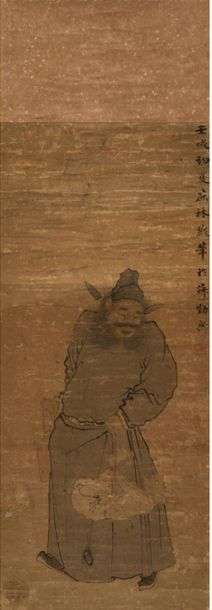 Zhongkui tenant une théière, un démon attaché à sa ceinture.
