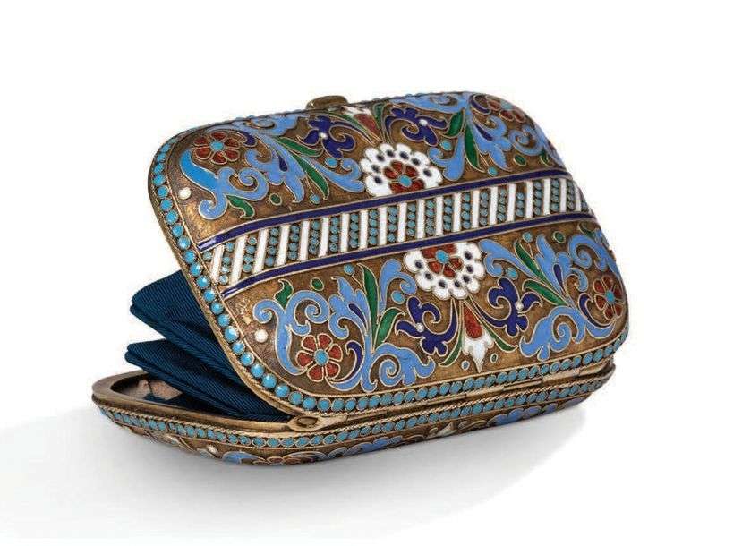 PORTE-MONNAIE en vermeil entièrement décoré d'émail polychrome cloisonné a