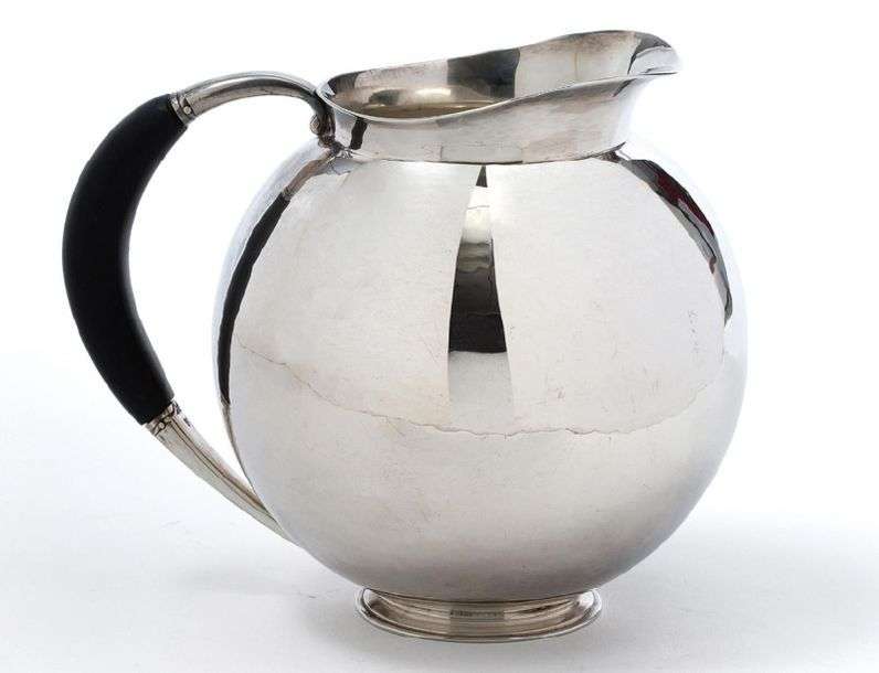 POUR GEORG JENSEN PICHET EN ARGENT À corps sphérique et col à bec verseur galbé.