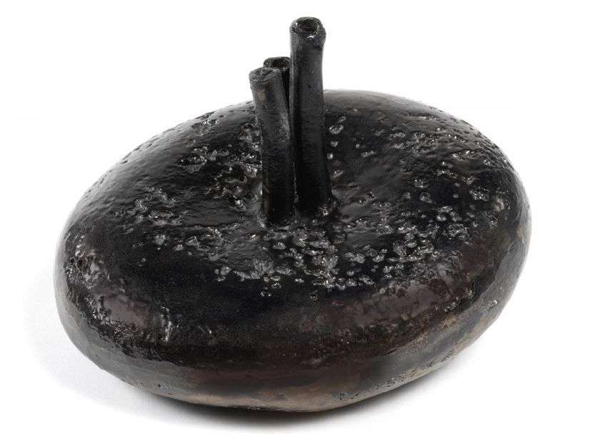 Black enameled ceramic sculpture.