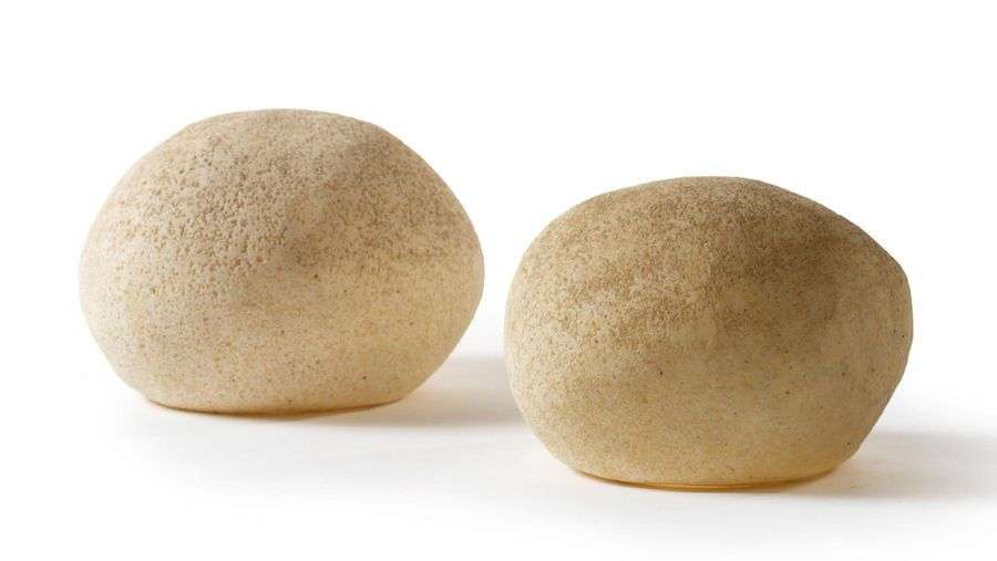 Two fiberglass and marble powder small lamps called " Rocher " with an aluminum base.