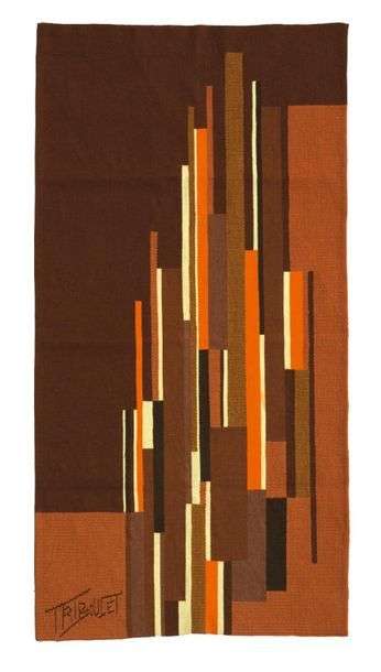 Tissage de basse lisse, à décor abstrait brun, orange et beige.