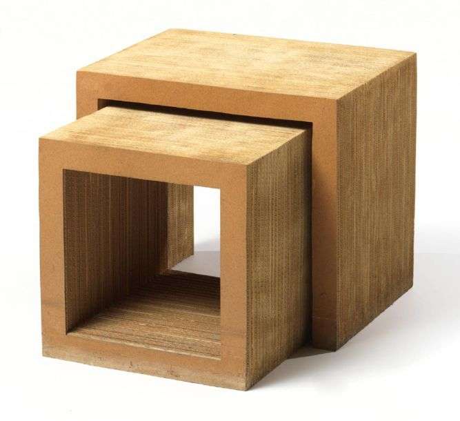 ENSEMBLE DE DEUX TABLES GIGOGNES De forme cubique, en carton laminé et collé. Edition Vitra (Usures, taches, rayures)