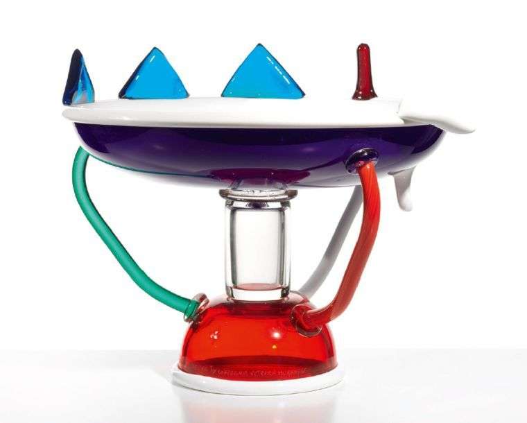 A polychrome glass cup signed " E. Sottsass per Memphis by