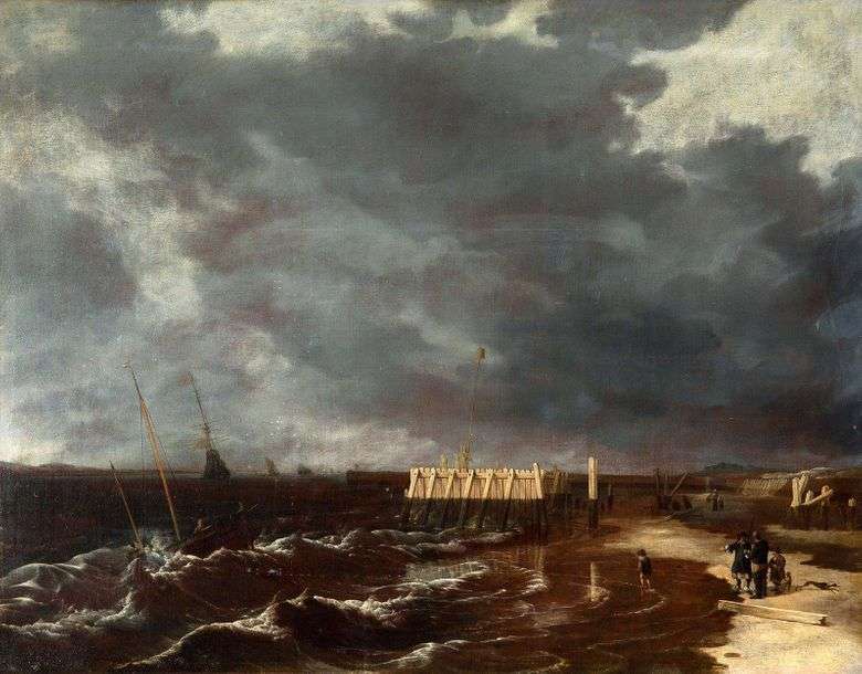 Shipping off a dutch seashore Oil on canvas, 35,4 x 45,7 in.