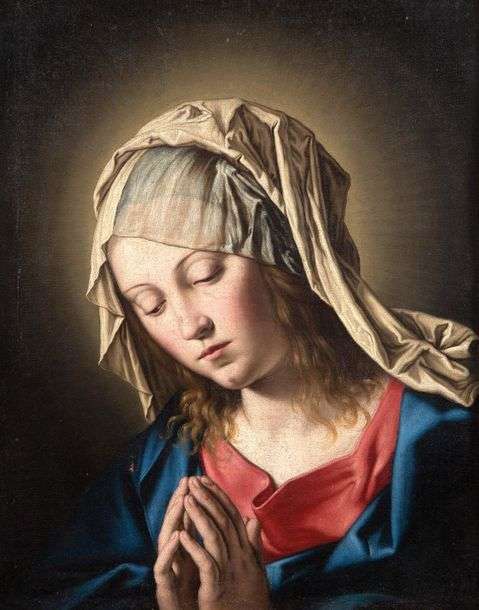 Figure familière qui s'offre au regard, cette douce Vierge de Sassoferrato séduit par la délicatesse de sa posture et l'intensité du sentiment pieux qu'elle incarne.