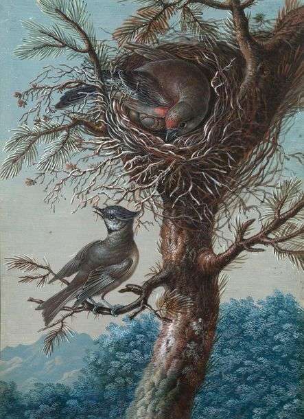 A bird brooding on her eggs Gouache on paper, 10,9 x 7,9 in.