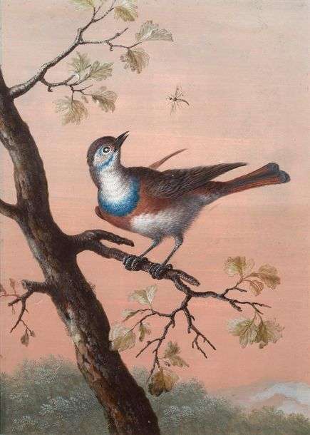 A bird looking at an insect Gouache, 10,9 x 7,9 in.