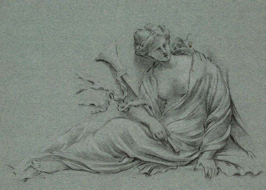 La Renommée Black chalk, 10,2 x 7,3 in.