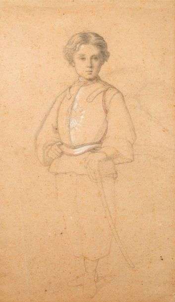 Portrait of the Imperial Prince Black and red chalk with white highlights 12,6 x 32,1 in.