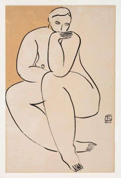 Il emploie la technique du pinceau, même dans ses dessins. Sa formation précoce à la calligraphie ressurgit, et lui procure une aisance évidente sur ce médium, traduite par la grâce et la simplicité du geste.
