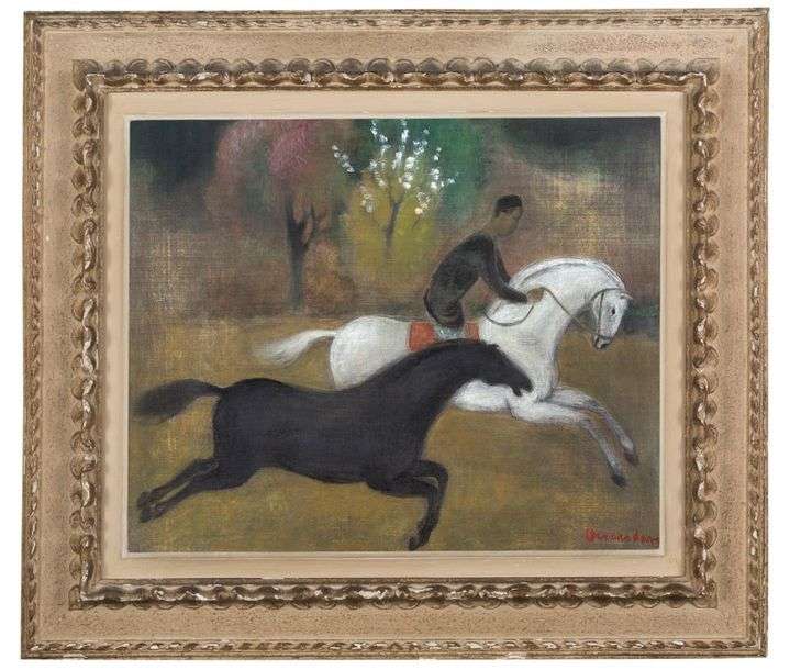 Réalisée durant son séjour parisien, Chevaux au galop offre un remarquable hommage à cet animal noble. Si Vu Cao Dam s'est détaché de la sculpture pour se consacrer davantage à la peinture, son talent initial se matérialise à travers le mouvement qui émane de la composition. Le dynamisme et la fouge des chevaux s'incarnent sous les grands aplats de couleurs. D'un talent de maître, l'artiste parvient à reprendre les codes de la peinture occidentale tout en mettant en exergue les éléments de sa culture natale. Ainsi, s'il adopte une construction classique où les personnages sont au premier plan et le décor en arrière-plan, il utilise un médium ainsi qu'un sujet caractéristiques de la culture sino-vietnamienne. Ce métissage hautement maîtrisé se retrouve dans le détail des chevaux : l'un blanc, l'autre noir, l'un domestiqué, l'autre sauvage. Artiste vietnamien imprégné de la culture française, Vu Cao Dam incarne à l'image du cheval la liberté d'esprit.