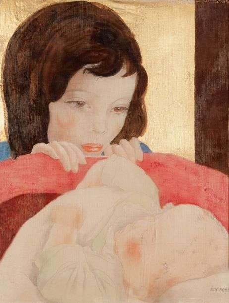Encre et couleurs sur soie, réhauts d’or, signée en bas à droite
