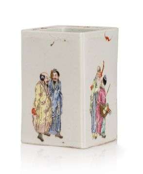 Petit porte-pinceaux en porcelaine et émaux de la famille rose à décor de huit Immortels.