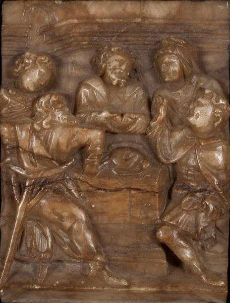 PLAQUE en albâtre sculpté en bas-relief représentant Le Souper à Emmaüs. Malines, début du XVIIe siècle