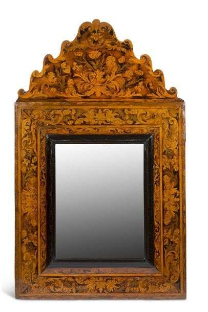 renversé à riche décor marqueté de bois