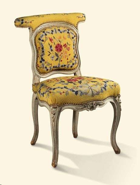 Époque Louis XV Garniture de tapisserie au point cloutée jaune à fleurettes.
