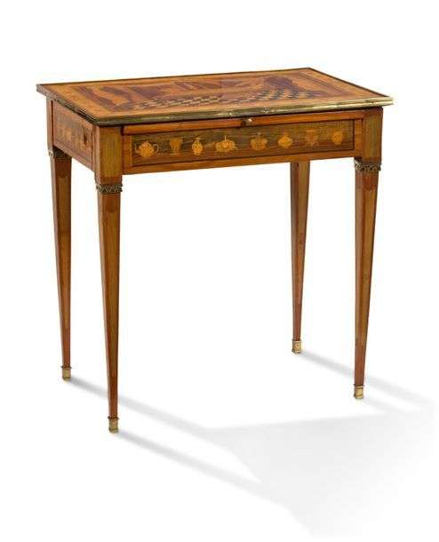 de rosaces et tulipes. Elle ouvre par un tiroir
