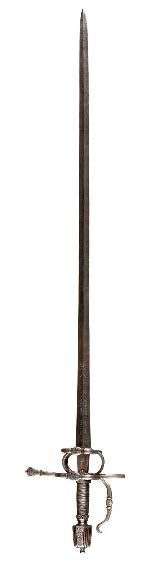 RAPIÈRE à lame diamant, garde en corbeille et quillons droits spatulés. Branche renflée, pommeau tronçonique.