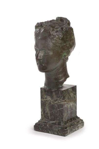 Bronze à patine verte, signé, marqué du cachet du fondeur Hebrard et numéroté 3 sur la nuque