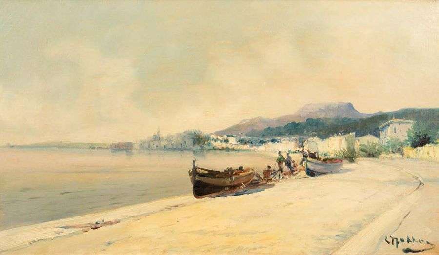 Oil on canvas, signed lower right 32,5 x 55 cm