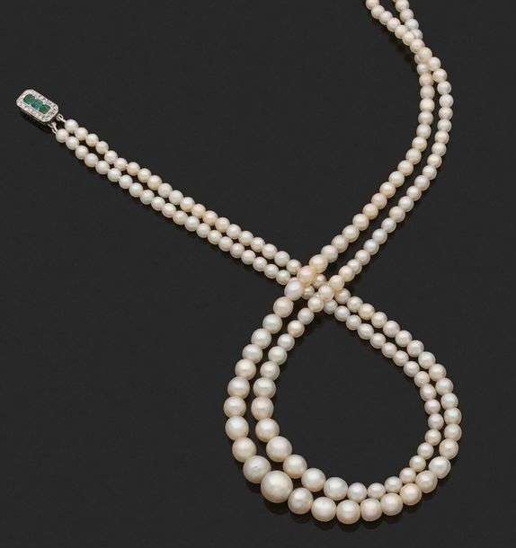 Deux rangs de 186 perles fines en chute