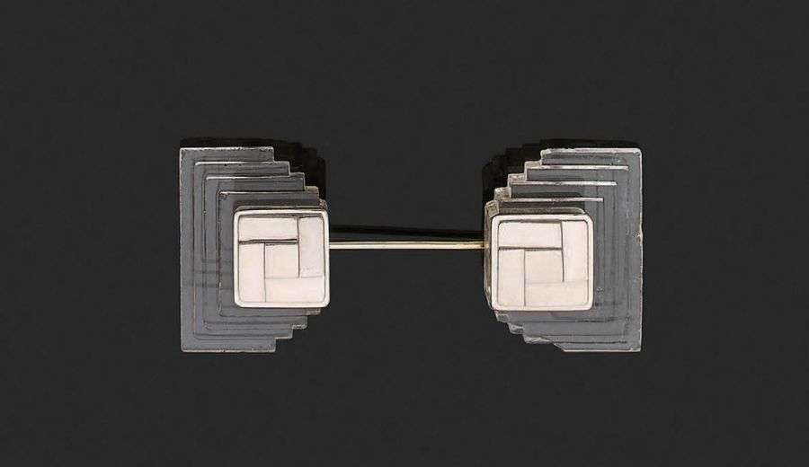 Epingle à jabot «motifs géométriques» Cristal de roche taillé en gradins, platine (850). Vers 1930. Long.: 5.8 cm - Pb.:19.2 gr. Accompagnée d'un certificat d'origine par Olivier Baroin attestant que cette broche a été réalisée par Suzanne Belperron avant 1930