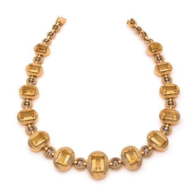 A citrine, diamond and gold necklace