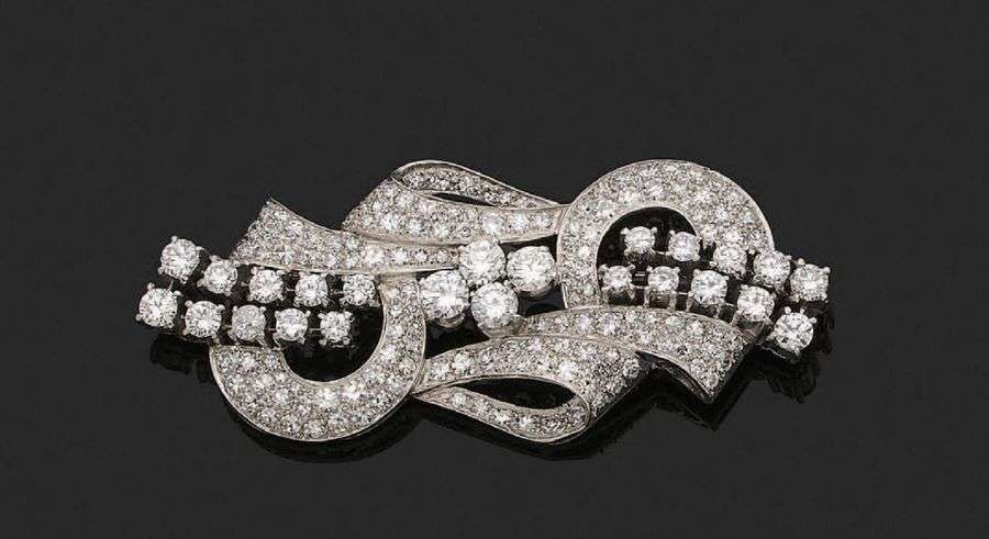 A diamond and platinum brooch