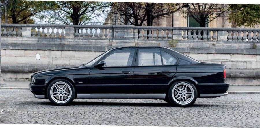 La BMW M5 première du nom, apparaît en 1985 sur la génération E28. Celle-ci vient révolutionner le milieu de la voiture de sport en déclinant une sage berline de série en monstre de la route capable de rivaliser avec certaines Porsche. Présentée en janvier 1988, la nouvelle BMW E34 connaitra un succès planétaire et une carrière longue de 10 ans. La très désirable M5 est le fleuron de la gamme et développe 315 chevaux, elle sévit sans concurrence dans le marché haut de gamme des berlines les plus rapides du monde avec une vitesse de pointe de 250 km/h puis 280 km/h avec la dernière version 3.8l. Sur un total de 1,3 million de E34 vendues, on compte 3 910 exemplaires équipés du moteur 3.8 dont seulement 752 avec la rare boîte 6 rapports. Sa carrière se décline en trois étapes majeures : Le modèle 3.6 L de 315 ch, la version 3.8 L dès 1991 puis la 3.8l EVO de 340 ch à partir de mai 1994. La M5 EVO est donc l’évolution la plus désirable en étant la dernière BMW à être équipée du magnifique bloc 6 cylindres M30 dérivé du sublime coupé 2800 CS. Cette dernière version est rarissime, ce qui s’explique par un prix de vente élevé de 605 000 francs (hors options) en 1995 !