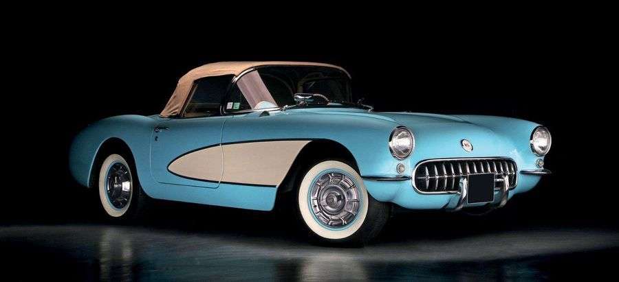 Au début des années 1950, la marque Chevrolet présente l’un des modèles les plus emblématiques de la production américaine, la Corvette. La C1, est à l’époque la première voiture de série munie d’une carrosserie en fibre de verre. La ligne très novatrice est directement reprise du concept-car EX-122 Roadster présenté en janvier 1953 au Waldorf Astoria de New York. L’auto est alors motorisée par un six-cylindres en ligne Chevrolet de 3.9 l accouplé à une boîte automatique. Malheureusement ce bloc « blue flame » ne développe pas la puissance attendue par ses utilisateurs. Afin de corriger ce défaut et d’augmenter les ventes, un nouveau moteur est proposé en 1955. Il s’agit d’un V8, architecture qui sera déclinée sur les futures générations. Accouplé à une boîte automatique ou à une boîte manuelle à 3 rapports ce V8 d’une cylindrée de 4.3 l développe 195ch. C’est réellement en 1956 que la gamme se voit dotée de moteurs suffisamment puissants pour les standards du marché. Le V8 4.3 l est proposé en trois versions développant 210, 225, ou 240 ch. Les performances sont en net progrès tout comme les ventes qui suivent la même évolution. Une boite mécanique à 4 rapports sera ensuite proposée en 1957. Les cylindrées et les puissances, continueront de progresser jusqu’au remplacement du modèle en 1963.