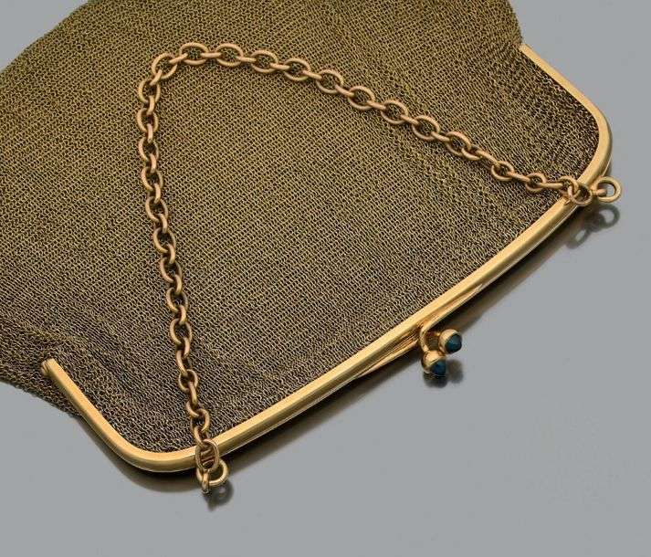 SAC DU SOIR Cabochons de saphirs, maille or jaune 18K (750).